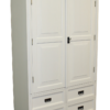 Vaatekaappi on täyttä puuta. Valmistettu koivusta ja tervälepästä. Maalattu käsin, Akzo Nobel konsernin vesiohenteisella maalilla. Maalin sävy puhdas valkoinen.Tilauksesta maalaamme myös asiakkaan toiveiden mukaan, kuluneen valkoista, erisävyillä, vahalla, öljyllä.